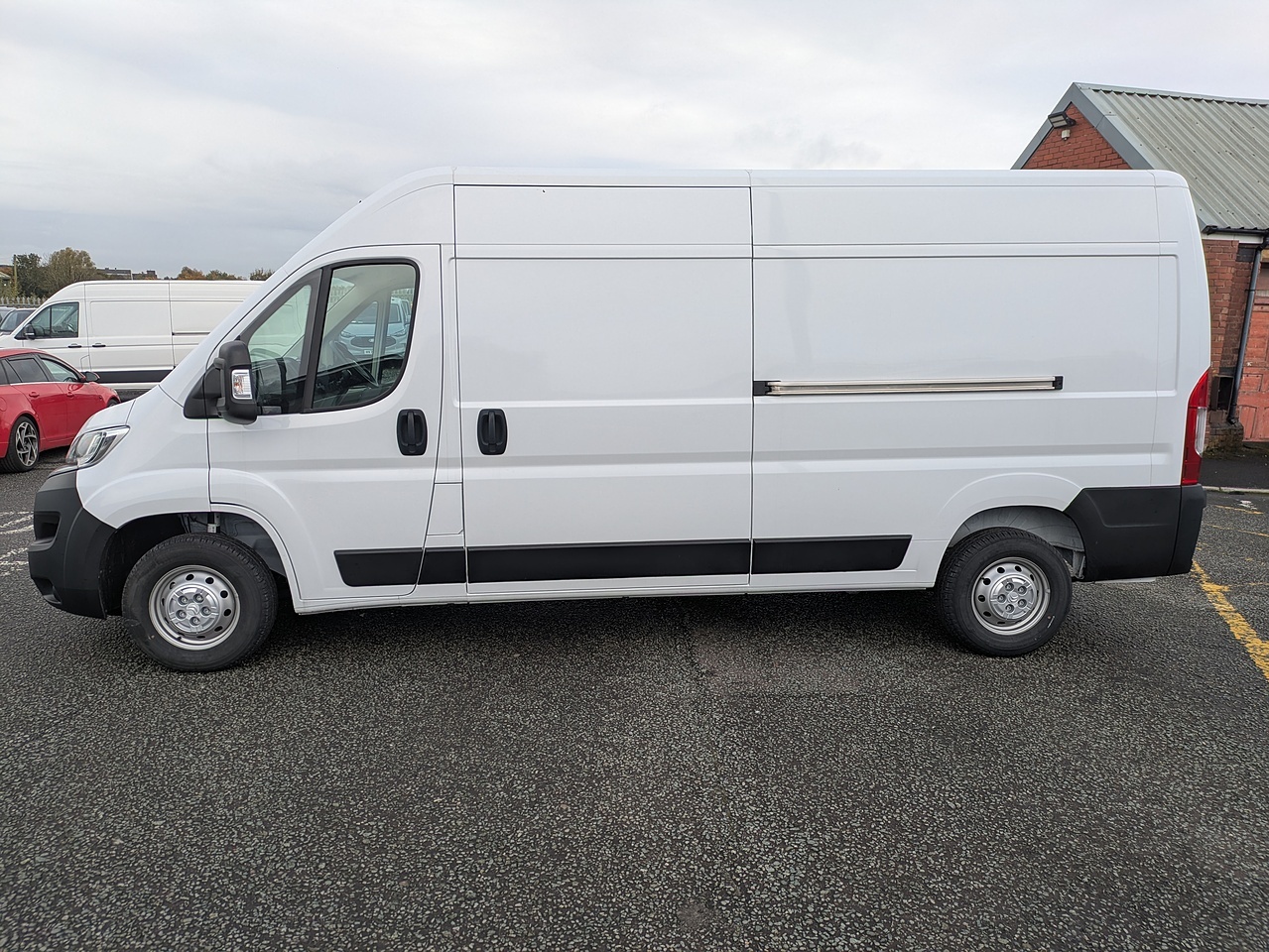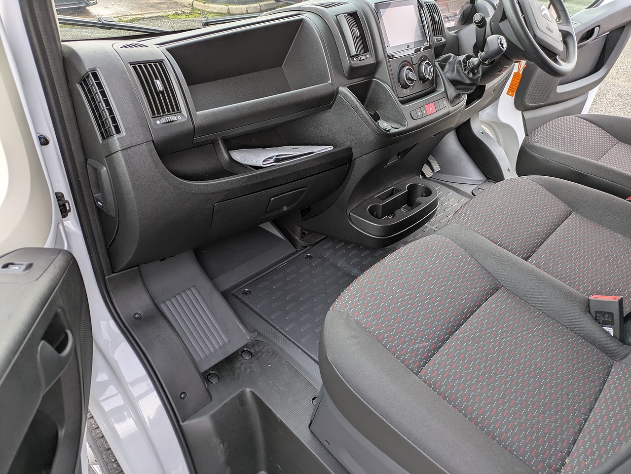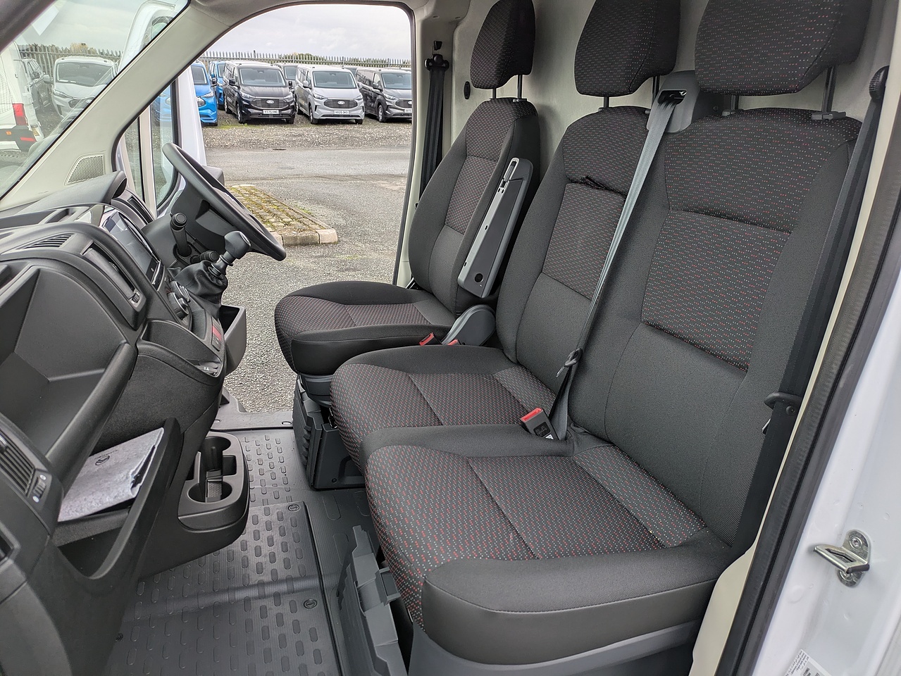 Long wheel-base, 3 seats, White, 15in Steel Wheels, 15in Wheel Trims, 2x Load Area Lights, 7in Colour Touchscreen, ABS - Anti-Lock Braking System, Airbags - Driver, Battery Charge Warning, Bulb Out Warning for Side Light - Headlamp and Indicators, Cruise Control with Programmable Speed Limiter, Daytime Running Lights, Door Open Warning for Cab Doors, Drivers Seat Height - Rake and Reach Adjustable with Lumbar Adjustment and Armrest, EBA - Emergency Braking Assistance, EBFD - Electronic Brakeforce Distribution, Electronic Stability Control - ESC, Front Electric Windows, Full Steel Bulkhead, Gear Shift Indicator, Glove Box - Lockable and Non-Illuminated, Halogen Headlights with Clear Polycarbonate Lenses, High Frequency Remote Control Central Locking with 3-Button Plip, Laminated Windscreen, Lights On Alarm, Load Tie Down Hooks in Cargo Area - 10, Manual Air Conditioning for Cab Area - including Glovebox, Manually Folding Door Mirrors, Nearside Sliding Side Loading Door, Non Slip Hardwearing Front Cabin Floor Covering, Oil Level Indicator, Perimetric Alarm, Power Steering - Non Variable, Puncture Repair Kit, Rear Doors Opening - 180 Degree, Rear Parking Sensors, Rear Single-Leaf Suspension, Remote Central Locking with Deadlocking and Separate Locking For Cab, Remote Headlight Adjustment from Facia, Rev Counter - Water Temperature Gauge - Fuel Gauge and Trip Computer, Seats - Dual Passenger Bench with Armrest, Side Rubbing Strips, Steering Wheel - Reach Adjustable, Telematics Box for Free2Move Connect Fleet Services, Thatcham Rolling Transponder Immobiliser, Three-Point Inertia Reel x3 - Height Adjustable Seatbelts - Two with Single Passenger Seat, Tinted Windows, Twin Lens Door Mirrors with Electrically Adjustable and Heated Upper Mirror, Two Cup Holders and Mobile Phone Storage in Centre of Lower Dashboard, Two Speed Intermittent Front Windscreen Wipers, Unglazed Rear Doors, Visible Vehicle Identification Number at Base of Windscreen